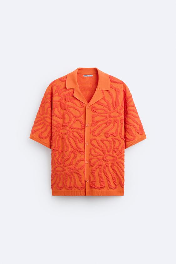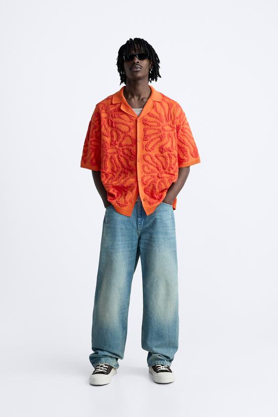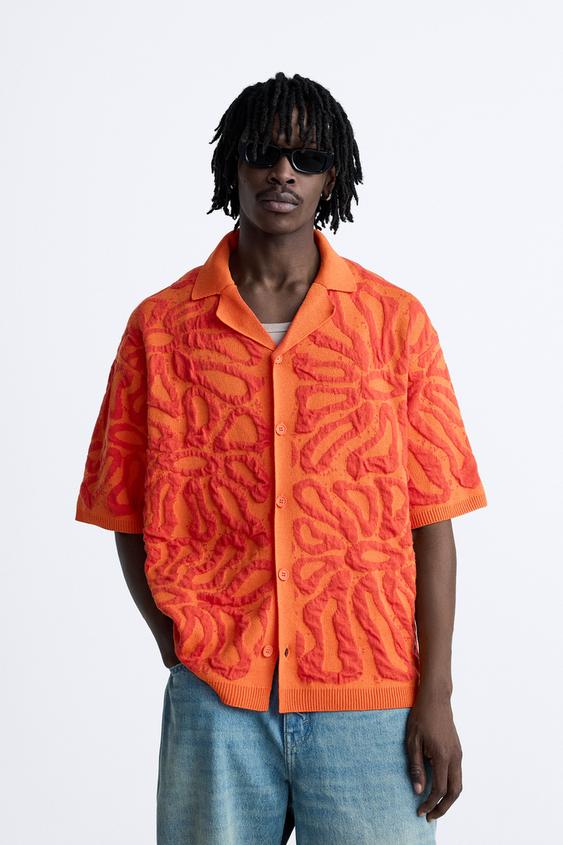 Camisa relaxed fit de punto. Cuello bowling y manga corta. Acabados en rib. Cierre frontal de botonadura.
