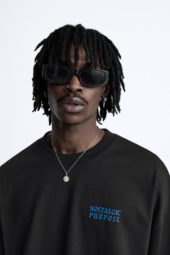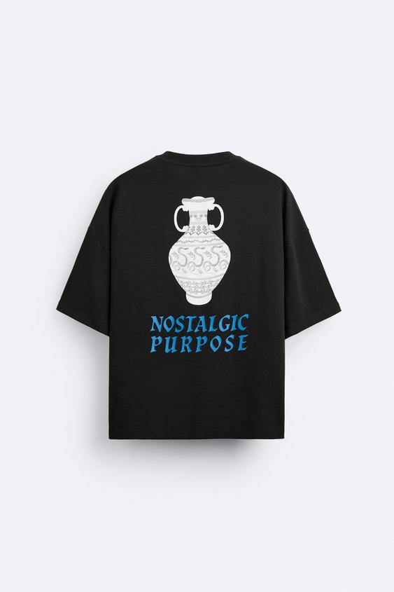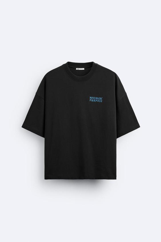 Camiseta relaxed fit. Cuello redondo y manga corta. Estampaciones combinadas a contraste en delantero y espalda.