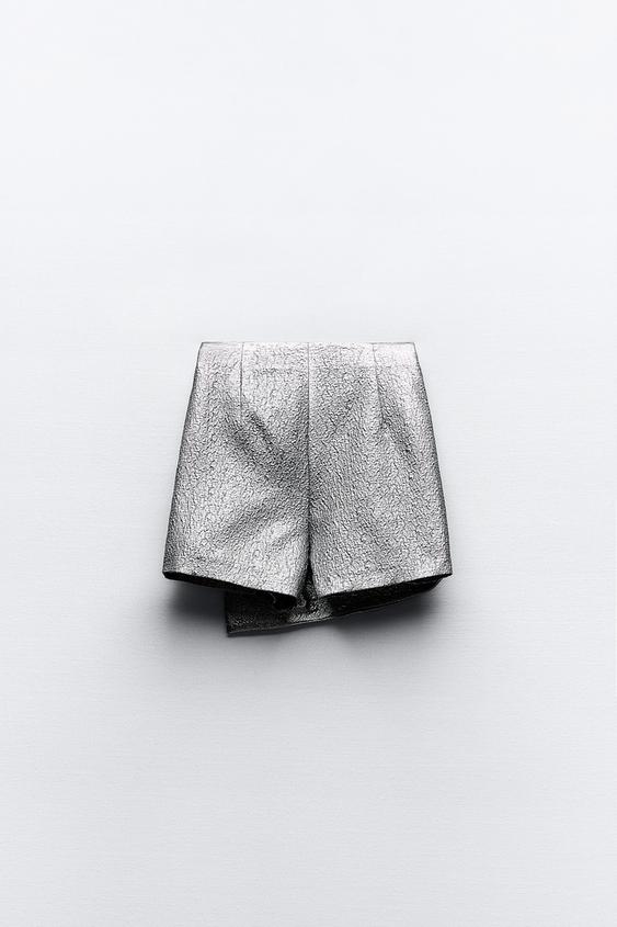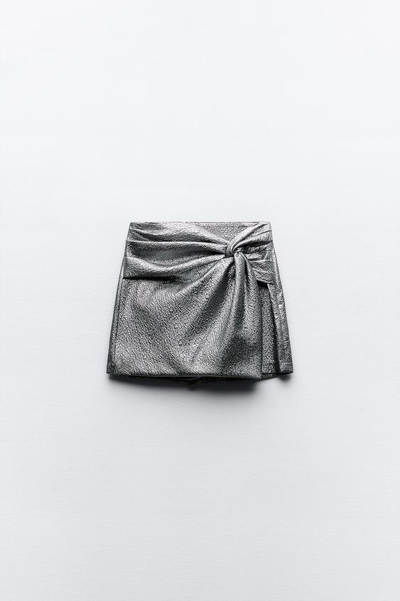 Falda pantalón de tiro alto con nudo delantero. Cierre lateral con cremallera oculta en costura.