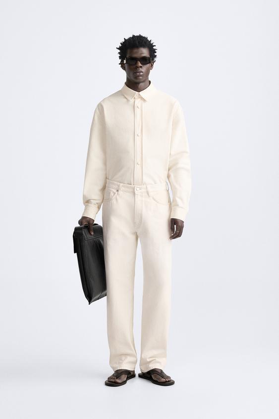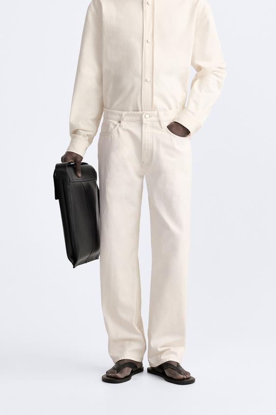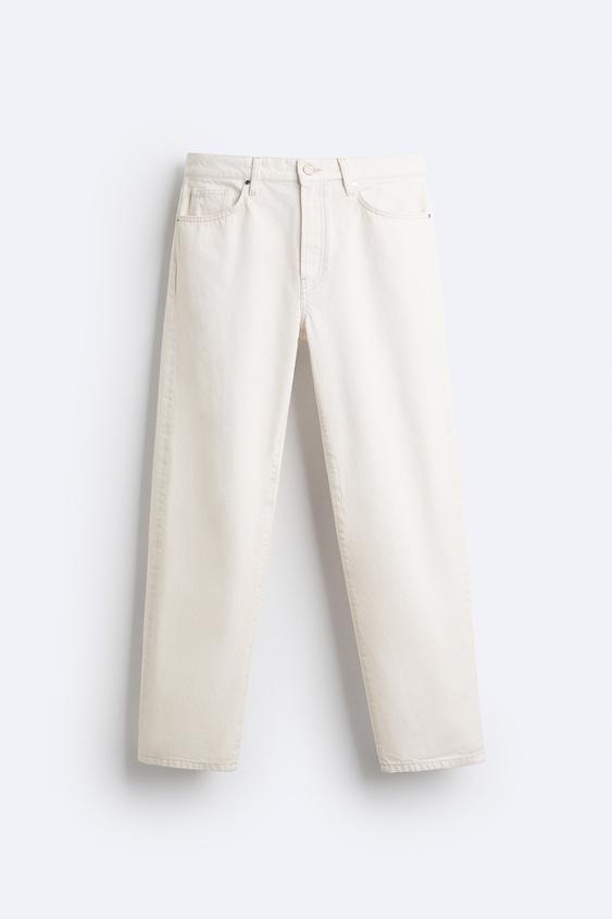 Jeans straight fit. Cinco bolsillos. Efecto lavado. Cierre frontal con cremallera y botón.